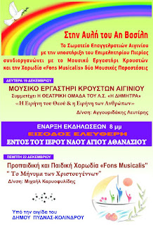 Χριστουγεννιάτικη εκδήλωση από την προπαιδική και παιδική χορωδία Canto  Olympus . Το ” μήνυμα των Χριστουγέννων ” από το προπαιδικό και το παιδικό τμήμα της χορωδίας Canto Olympus στην εκκλησία του Αγ. Αθανασίου  στο Αιγίνιο στις 22/...